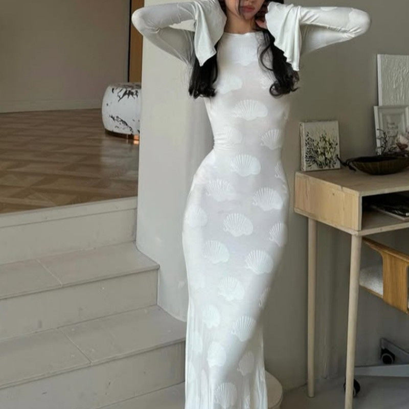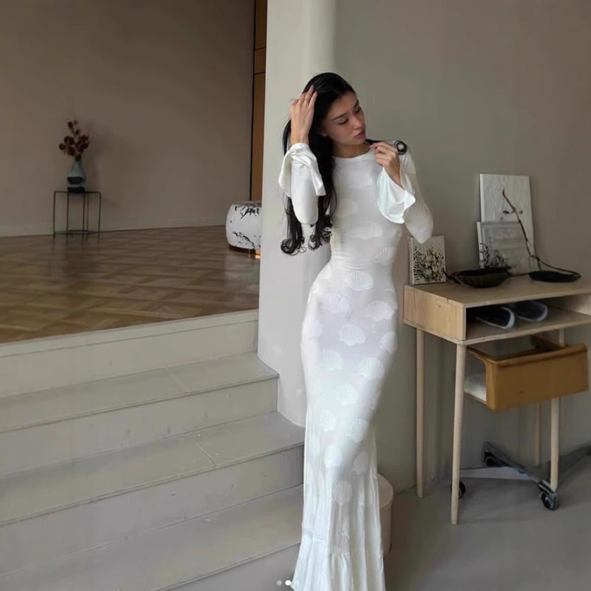 Crew-neck Flared-sleeve Tie-detail Pure Yet Seductive Long-sleeve Dress