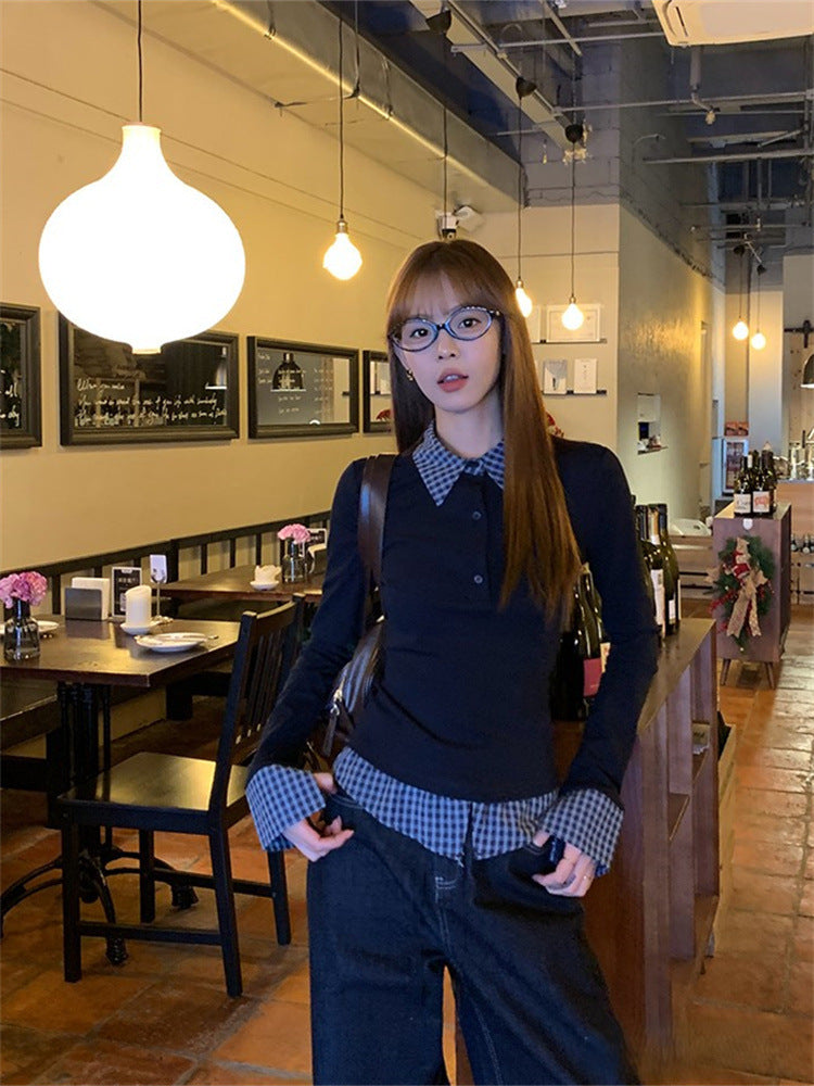 Fashion Fake Two-piece Slim-fit Long-sleeved T-shirt For Women