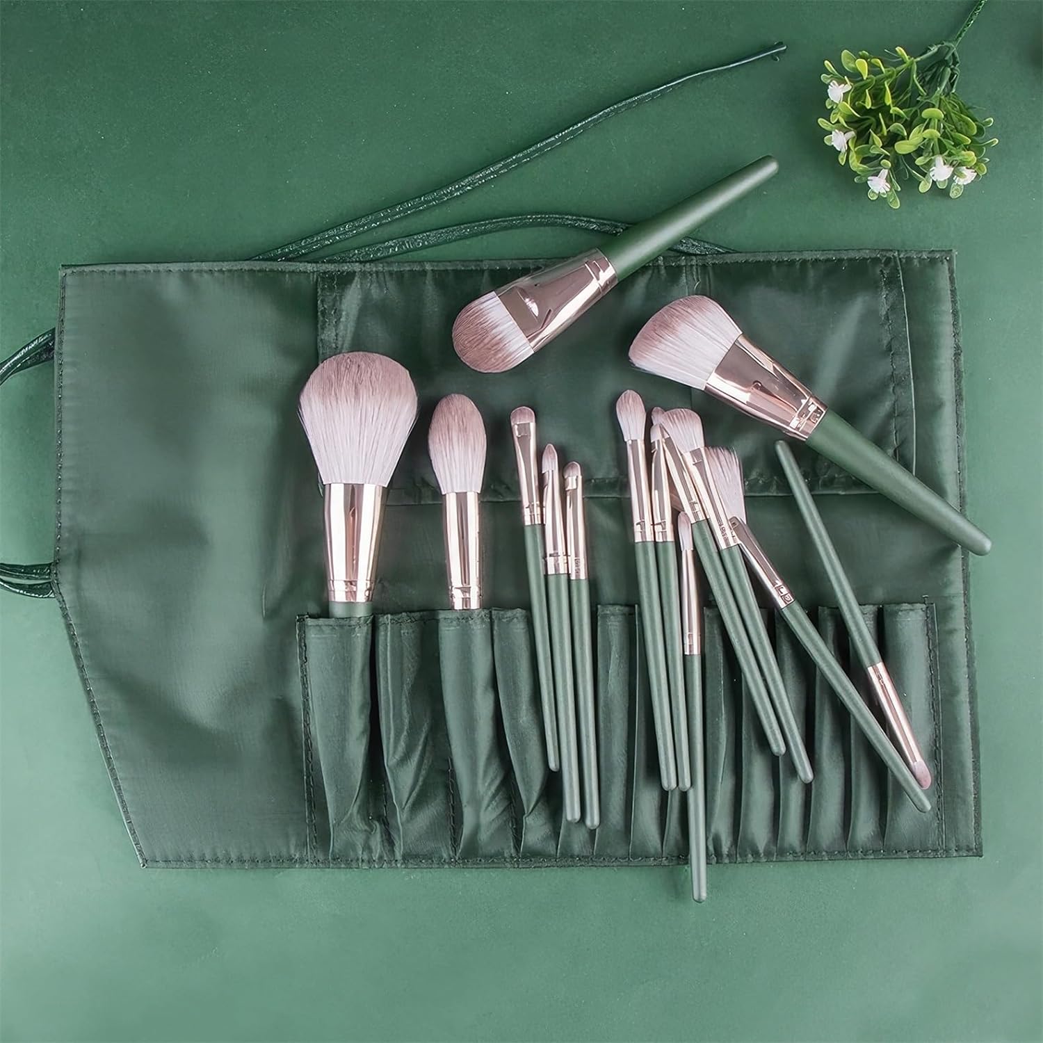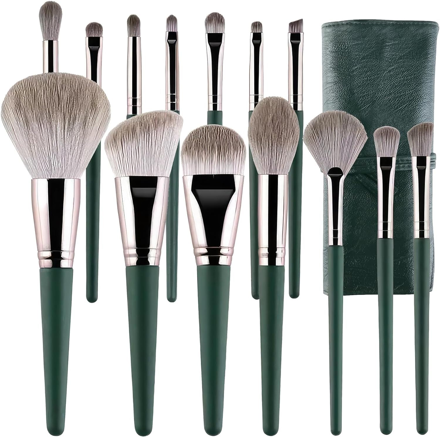 Makeup Brushes Makeup Brush Set Professional - 14 PCS Foundation Concealer Eye Shadow Brush, Contour Brush Make Up Brushes Kit, Travel Cosmetic Brush with Green Makeup Bags