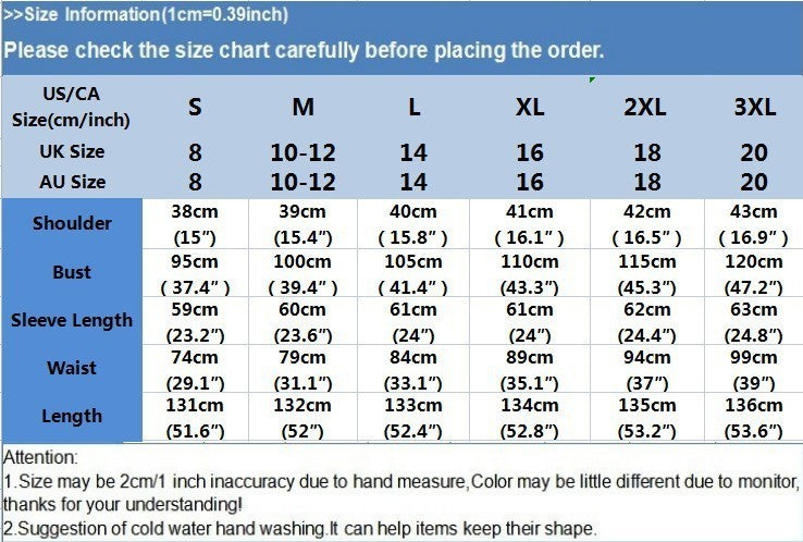 1. Asian sizes are 1 to 2 sizes smaller than European and American people. Choose the larger size if your size between two sizes. Please allow 2-3cm differences due to manual measurement. 2. Please check the size chart carefully before you buy the item, if you don't know how to choose size, please contact our customer service. 3.As you know, the different computers display colors differently, the color of the actual item may vary slightly from the following images.