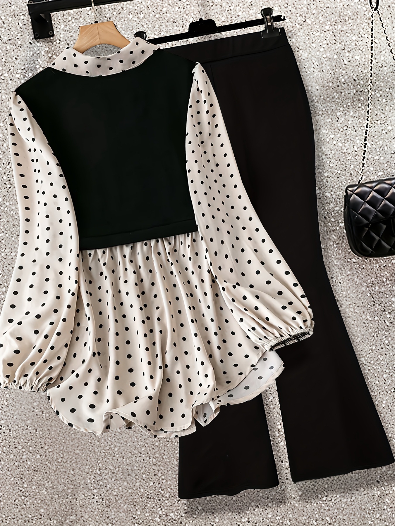 Polka Dot Patchwork Fake Two-piece Long-sleeved Shirt Leggings