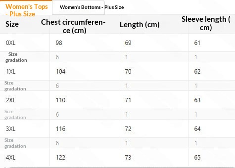 Size: 0XL, 1XL, 2XL, 3XL, 4XL