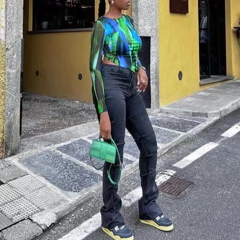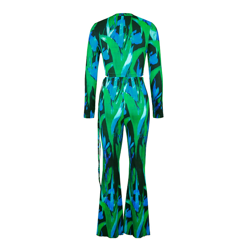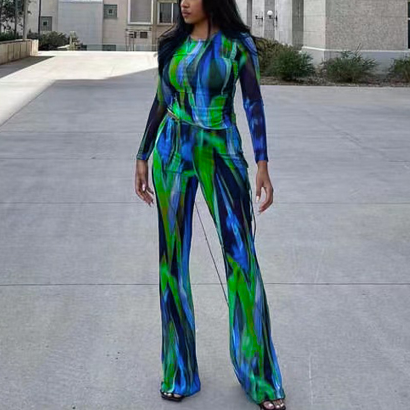 Printed Long Sleeve T-shirt And Wide-leg Pants Two-piece Set