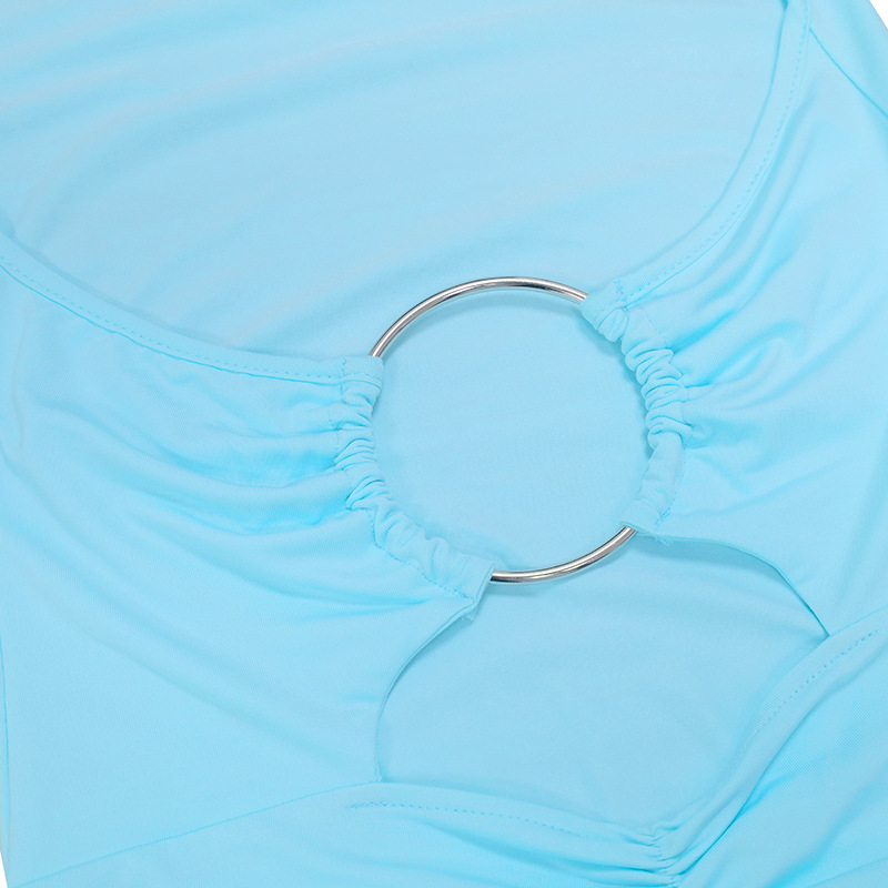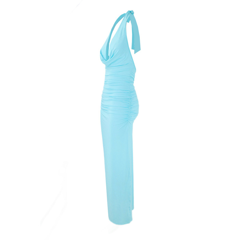 Vneck Halter Strap Low Rise Backless Cutout Pleated Dress
