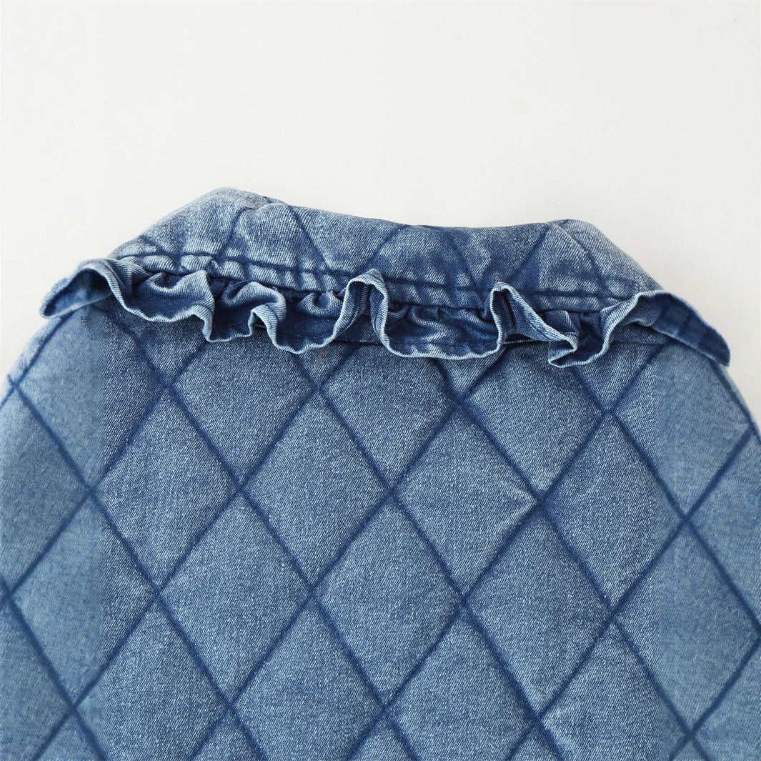 Washed Wood Ear Trim Denim Jacket Long Sleeve