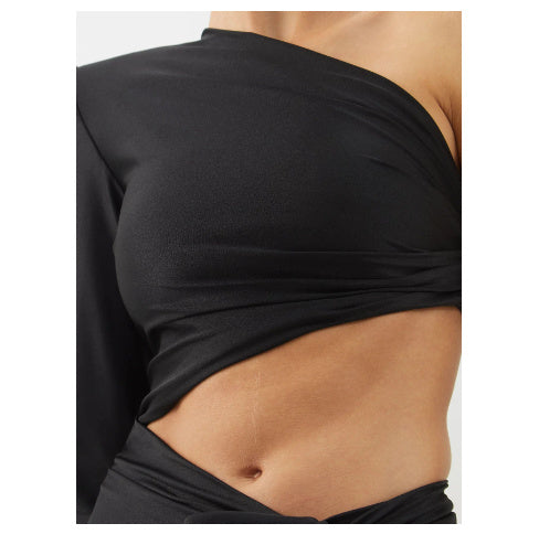 Women's Long Sleeved Hollow Slit Elastic Sloping Shoulder Dress