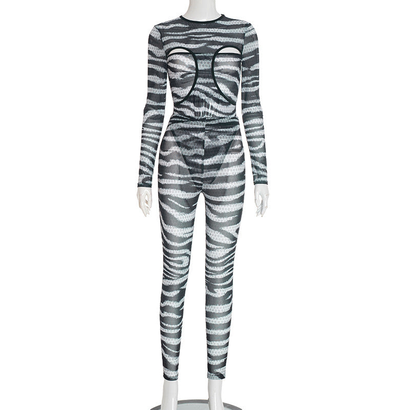 Women's Round Neck Hollowed-out Bustier Jumpsuit High-waisted Pants Set