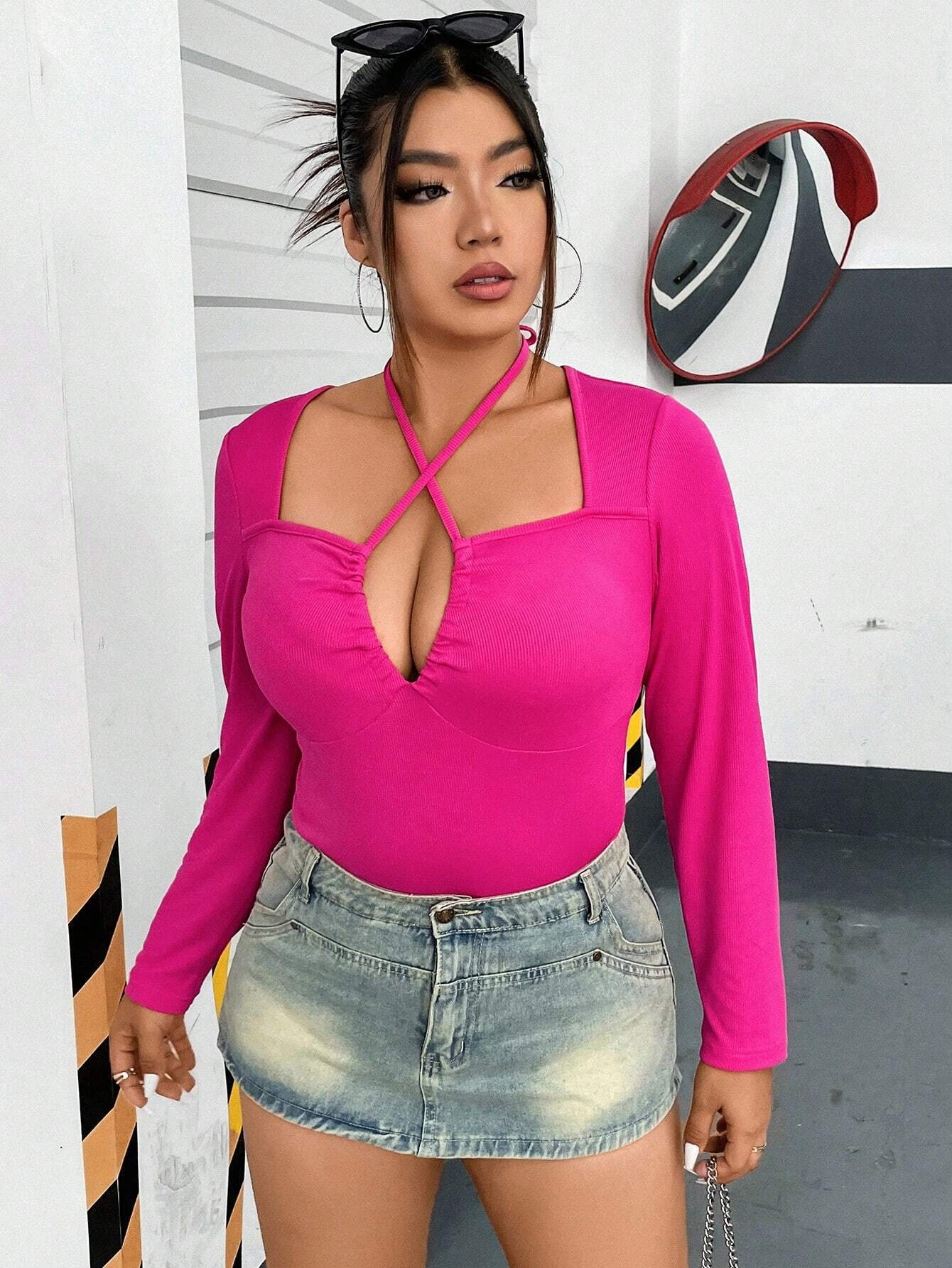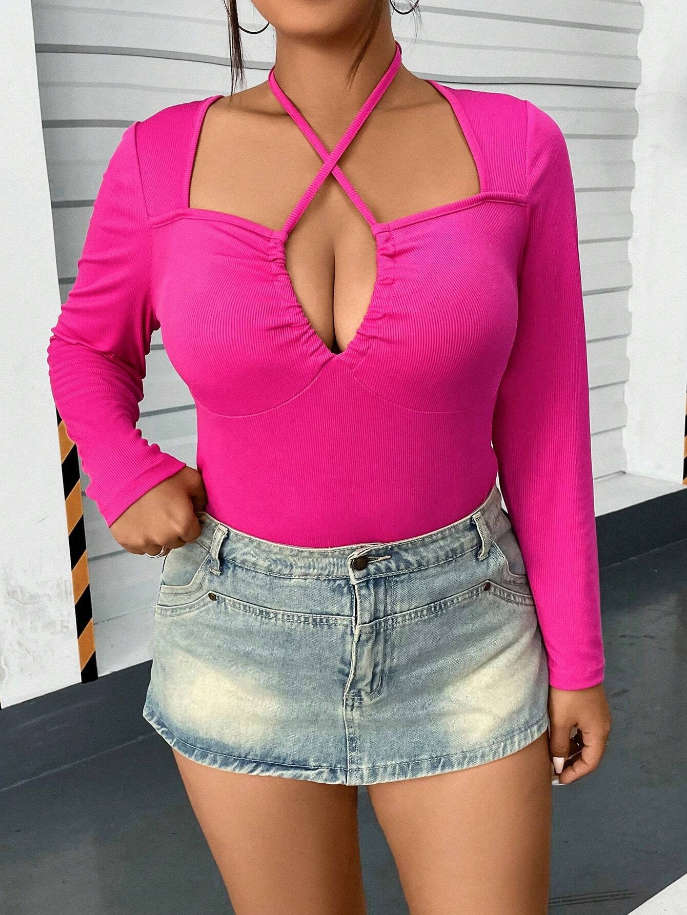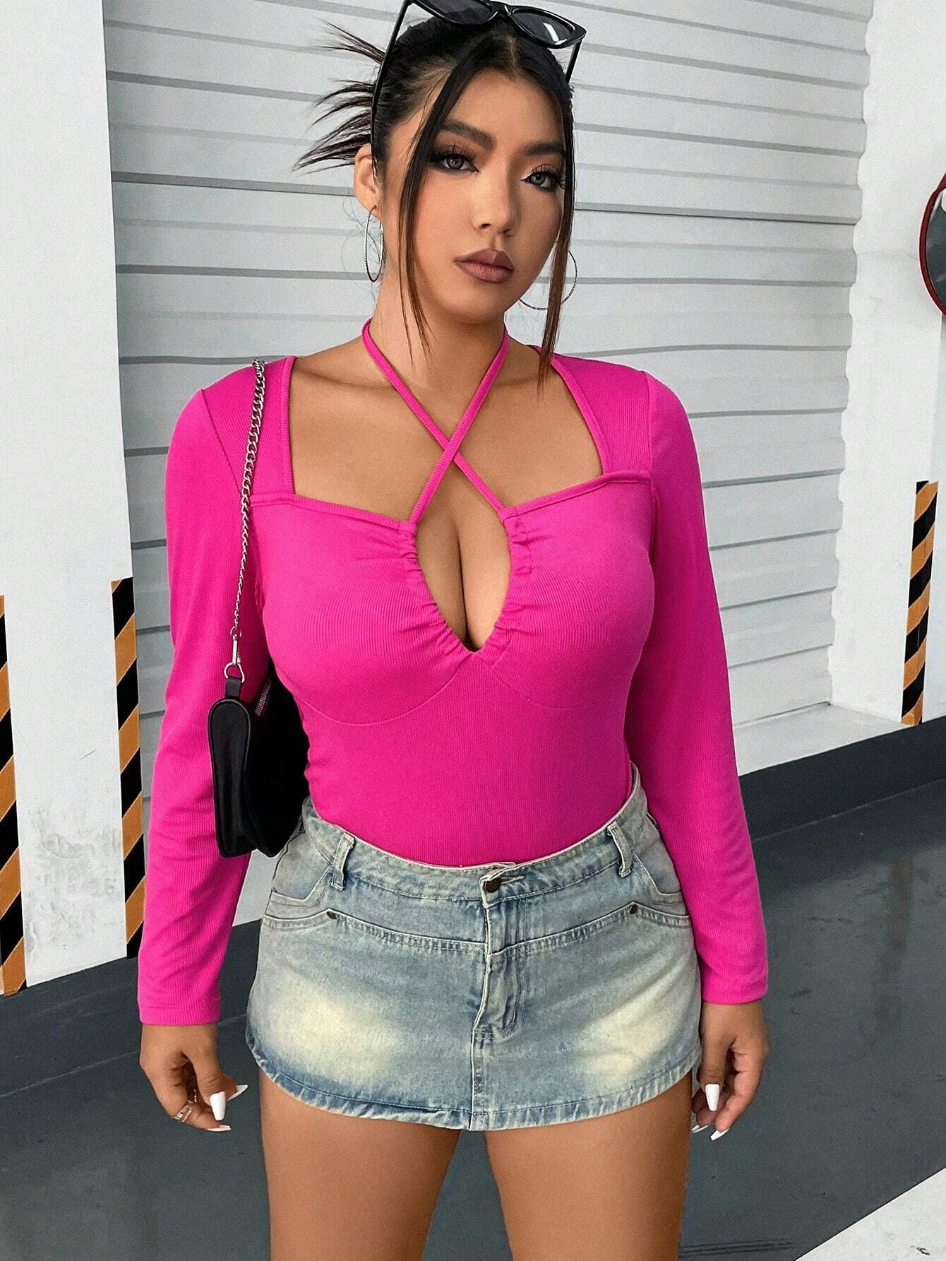 Women's Sexy Hollow-out Halter Slim-fit Long Sleeve American Top